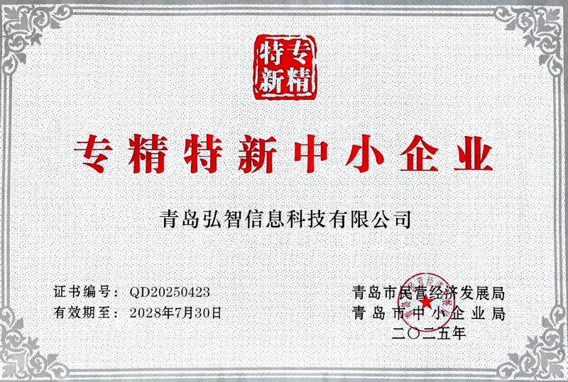 2025青島弘智信息科技有限公司再度榮膺"專精特新中小企業"稱號——以創新驅動發展,以專業鑄就卓越根據工信部《優質中小企業梯度培育管理暫行辦法》《青島市優質中小企業梯度培育管理實施細則》和《關于組織開展2025年度專精特新中小企業培育認定和復核工作的通知》要求,經企業申報、區市推薦、第三方機構審核等嚴格程序,青島弘智信息科技有限公司憑借持續的創新能力和顯著的行業貢獻,順利通過2025年度復核,再度成功獲...